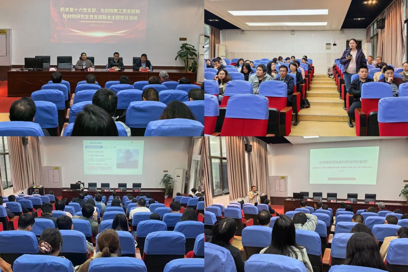 为树立和践行正确政绩观、落实开门办教育理念,推动党建与业务深度融合,4月21日下午,机关第十六党支部与化材学院教工党支部和研究生党支部联合开展主题党日活动。机关第十六党支部书记刘娜主持,机关第十六党支部党员、化材学院教工党员和研究生党员参加活动。